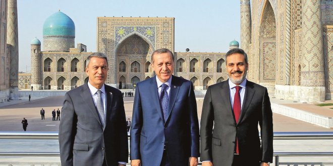 Λίγο μετά την απόπειρα πραξικοπήματος, ο τότε αρχηγός του γενικού επιτελείου Χουλουσί Ακάρ (αριστερά), ο Πρόεδρος Ρετζέπ Ταγίπ Ερντογάν και ο τότε επικεφαλής της Εθνικής Οργάνωσης Πληροφοριών (ΜΙΤ) Χακάν Φιντάν (δεξιά) φωτογραφήθηκαν στη Σαμαρκάνδη, Ουζμπεκιστάν, κατά τη διάρκεια επίσημης επίσκεψης στις 19 Νοεμβρίου 2016. Ο Ερντογάν ανέφερε σε συνέντευξη ότι η ΜΙΤ δεν τον είχε ενημερώσει εκ των προτέρων για την απόπειρα πραξικοπήματος.