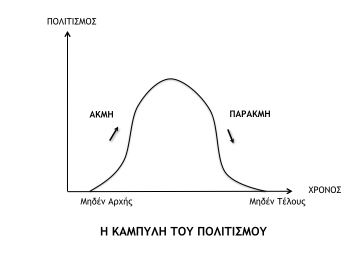 Το εμπειρικό πεδίο του θέματος είναι οι μεγάλοι ιστορικοί πολιτισμοί, των οποίων η περιγραφική θεώρηση μας λέει, πριν απ’ όλα, ότι: Όλοι έχουν αρχή και τέλος. Όλοι γνωρίζουν φάσεις ακμής και φάσεις παρακμής. Το δε τέλος τους συνδέεται κατά κανόνα με «βαθιά παρακμή». Η περιγραφική αυτή εικόνα, για την πορεία του πολιτισμού, αποδίδει μια κωδωνόσχημη καμπύλη. Αληθεύει άραγε;
