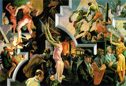 Ο ζωγραφικός πίνακας που πλαισιώνει τη σελίδα (“America today”, 1930) είναι έργο του, αμερικανού, Thomas Hart Benton.