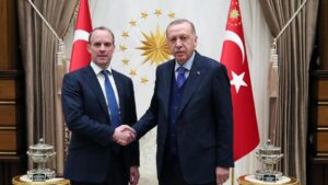 Φωτογραφία: Ο Τούρκος Πρόεδρος Ταγίπ Ερντογάν και ο βρετανός υπουργός εξωτερικών Ντομινίκ Ράαμπ. Στον τελευταίο αποδίδεται η εξαιρετικά φιλότουρκη πολιτική του Λονδίνου.