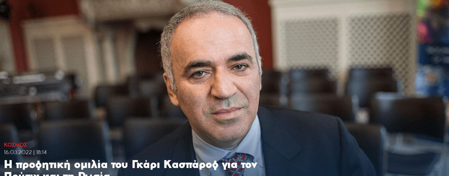 Στα λόγια ο κ.Κασπάρωφ είναι και δημοκράτης ,αλλά και Ρώσος πατριώτης και μεγαλοιδεάτης, ειδικά όταν λέει ότι είναι ξεπερασμένο σήμερα να μιλάμε ΜΟΝΟ για Αμερικανικές και Δυτικές αξίες.