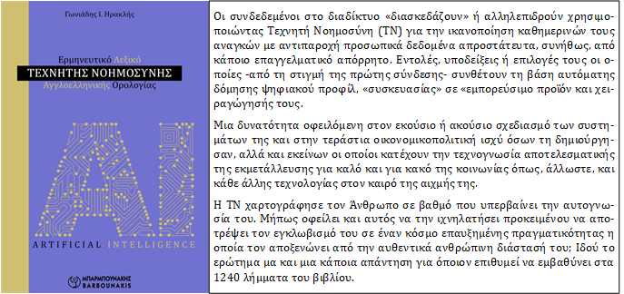 [5] Βλ. Ερμηνευτικό Λεξικό Τεχνητής Νοημοσύνης Αγγλοελληνικής Ορολογίας, Εκδόσεις Μπαρμπουνάκη, 2026.