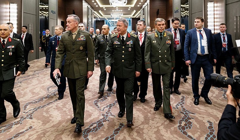 Το ρωσικό ηλεκτρονικό ειδησεογραφικό μέσο Sputnik (sputniknews.com) επικαλείται τη μαρτυρία ενός Τούρκου πολιτικού αναλυτή, του Μεσούτ Χακί Κασίν, ο οποίος υποστήριξε πως κατά την τελευταία κορύφωση της κρίσης στη Συρία, με την προώθηση των τουρκικών δυνάμεων προς την πόλη Ιεράπολη (Μανπίτζ), η Ρωσία απέτρεψε σύγκρουση των αμερικανικών δυνάμεων που ήταν παρούσες στην περιοχή με τις τουρκικές που προχωρούσαν προς την πόλη. Ενδεχομένως, ο κίνδυνος μιας σοβαρότερης σύγκρουσης να επέβαλε τη συνάντηση των αρχηγών των επιτελείων των τριών χωρών (Τουρκίας, Ρωσίας και ΗΠΑ) στην Αττάλεια στις 7 Μαρτίου.