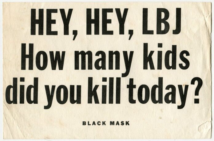 Στη φωτογραφία γνωστό σύνθημα κατά του Τζόνσον απο την εξέγερση των αμερικανών φοιτητών στα μέσα του ’60.