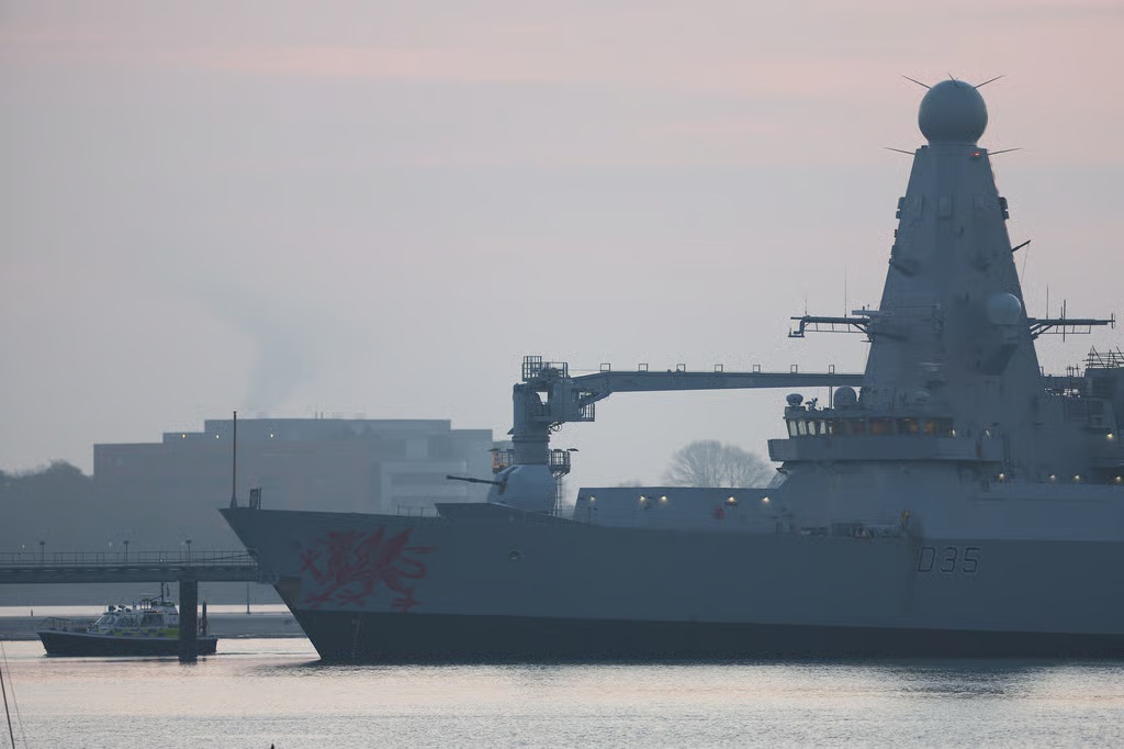 Το HMS Dragon έδεσε στο Πόρτσμουθ της Αγγλίας στις 4 Μαρτίου πριν από την ανάπτυξή του στην Κύπρο. Η Βρετανία είναι μεταξύ αρκετών ευρωπαϊκών κρατών που στέλνουν τώρα στρατιωτικά μέσα προς τη Μέση Ανατολή. | Peter Nicholls/Getty Images