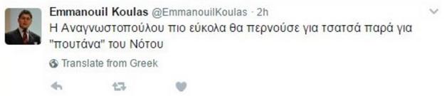 Ο κ. Κούλας είχε σχολιάσει τα γραφόμενα της κυρίας Αναγνωστοπούλου με ένα tweet: