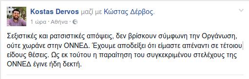 ΜΕ ΑΝΑΡΤΗΣΗ ΣΤΟ FACEBOOKΜε ανάρτηση στο Facebook ζήτησε συγγνώμη ο παραιτηθείς διευθυντής της ΟΝΝΕΔ Θεσσαλονίκης για τα σχόλια που έκανε εναντίον της Σίας Αναγνωστοπούλου.