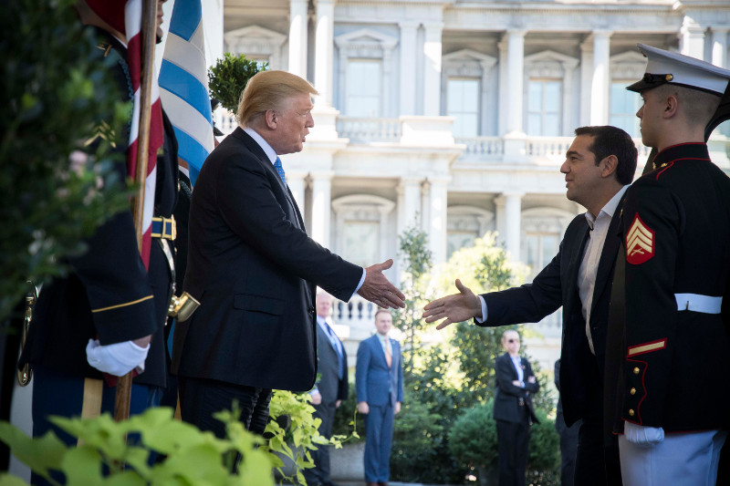 Στις 7 το απόγευμα ώρα Ελλάδος χθες ο Αλέξης Τσίπρας με μια θηριώδη λιμουζίνα έφθασε μπροστά από την πύλη του Λευκού Οίκου όπου τον περίμενε ο Ντόναλντ Τραμπ.