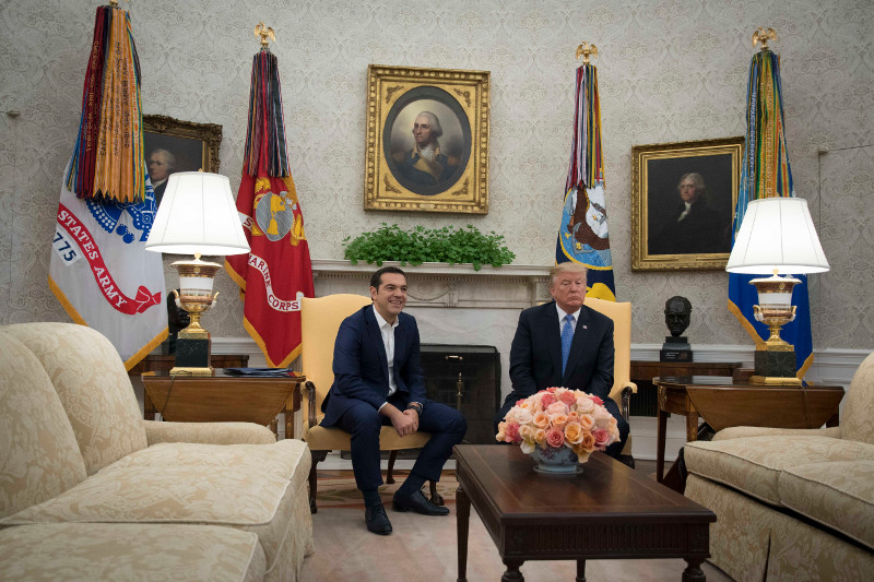 Νωρίτερα, το Γαλλικό Πρακτορείο μετέδωσε δηλώσεις που έκανε ο πρόεδρος Τραμπ υποδεχόμενος τον Αλέξη Τσίπρα στο Οβάλ Γραφείο, όπου σημείωσε ότι «κάνετε σπουδαία δουλειά για την ανάκαμψη της χώρας» και ότι η Ελλάδα «θα επιστρέψει», χαρακτηρίζοντας τους Έλληνες «πραγματικούς φίλους, πιστούς φίλους και συμμάχους».