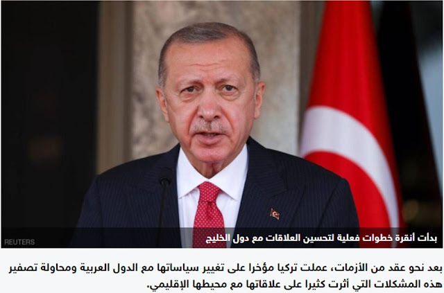 Η Άγκυρα ξεκίνησε συγκεκριμένα βήματα για τη βελτίωση των σχέσεων με τα κράτη του Κόλπου και την Αίγυπτο, καθώς ξεκίνησαν φιλικές δηλώσεις, μαζί με υψηλού επιπέδου επαφές για το άνοιγμα διπλωματικών διαύλων και το άνοιγμα μιας νέας σελίδας.