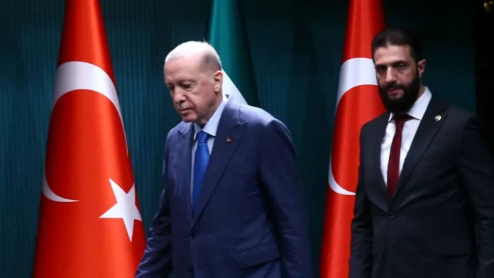 Ο ΠΡΟΕΔΡΟΣ ΤΗΣ ΣΥΡΙΑΣ Άχμεντ αλ-Σαράα και ο ΠΡΟΕΔΡΟΣ ΤΗΣ ΤΟΥΡΚΙΑΣ Ρετζέπ Ταγίπ Ερντογάν φτάνουν για συνέντευξη Τύπου στην Άγκυρα νωρίτερα φέτος. Το Ισραήλ, οι ΗΠΑ και η Τουρκία είναι βασικοί παράγοντες στη διαμόρφωση της τύχης της Συρίας και της περιφερειακής σταθερότητας, υποστηρίζει ο αρθρογράφος.