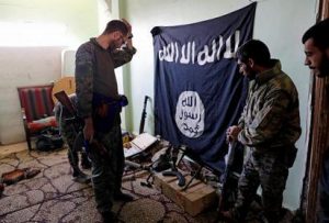 Στρατιώτες των Συριακών Δημοκρατικών Δυνάμεων επιθεωρούν μια καταληφθείσα αποθήκη όπλων του ISIS στην Raqqa, τον Οκτώβριο του 2017. ERIK DE CASTRO / REUTERS