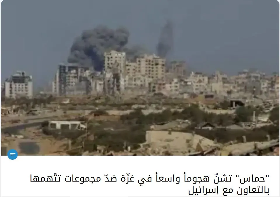 Το αραβικό κανάλι Al hadath ανέφερε ότι η Χαμάς εξαπολύει μια μεγάλης κλίμακας επίθεση στη Γάζα εναντίον ομάδων που κατηγορεί για συνεργασία με το Ισραήλ.