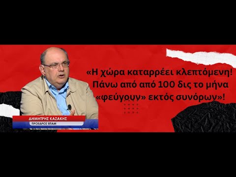 Και καταρρέει την ίδια ώρα που άφθονο χρήμα φεύγει για το εξωτερικό. Ο κ.Καζάκης επικαλούμενος επίσημα στοιχεία λέει ότι από τη χώρα βγαίνουν κάθε μήνα πάνω από 100 δις! «Το Φεβρουάριο βγήκαν 112 δις! Τι είναι αυτά τα λεφτά; Ρωτάω και ξαναρωτάω και απάντηση δεν τολμά να δώσει κανείς», λέει.