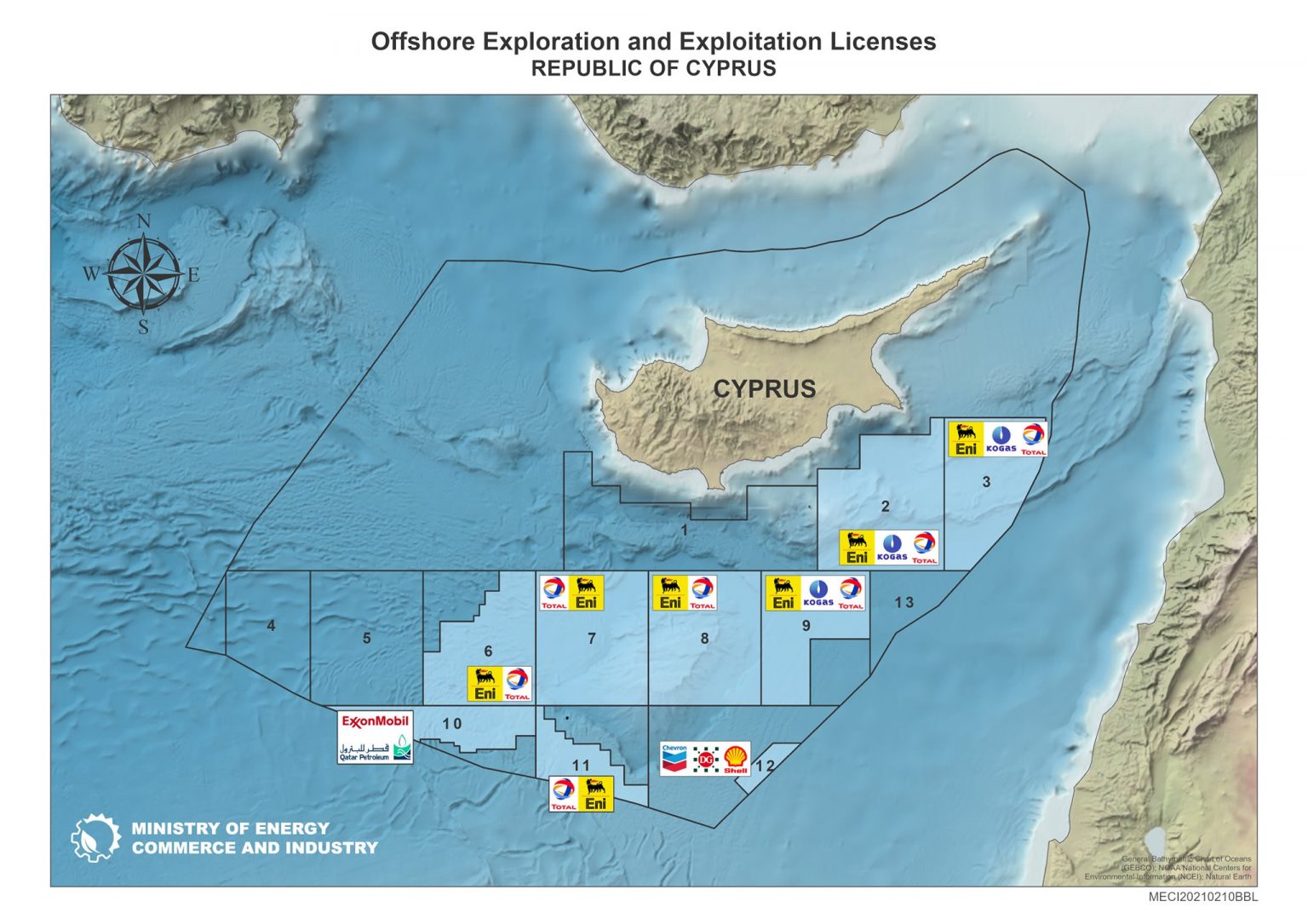 Δεν έμαθε, φαίνεται, τα εξής ότι το 2003/4 έγινε ήδη η συμφωνία οριοθέτησης Κύπρου-Αιγύπτου από τον Τάσσο Παπαδόπουλο (αυτή που εμείς πρέπει να περιμένουμε δήθεν να λυθεί το Κυπριακό για να γίνει…), και ακολούθως οι συμφωνίες της Κύπρου με Ισραήλ και Λίβανο. Έχουν ήδη αποδοθεί προς έρευνα τα εξής οικόπεδα στις ακόλουθες εταιρείες, Ιταλική ΕΝΙ (2, 3, 6, 7, 8, 9, 11), Γαλλική TOTAL (2, 3, 7, 8, 9, 11), Κορεάτικη KOGAS (2, 3, 9), Αμερικανικές EXXON MOBIL (10) και Chevron (12), Ολλανδοβρετανική Shell (12) και Ισραηλινή DELEK (12). Οι εταιρείες αυτές έχουν ήδη προχωρήσει σε έρευνες και γεωτρήσεις στην περιοχή. Προσθέτω ότι τα οικόπεδα 10, 11 και 12 ακουμπούν στην ΑΟΖ της Αιγύπτου, το 9 και 12 με του Ισραήλ και το 3 και 13 με του Λιβάνου.