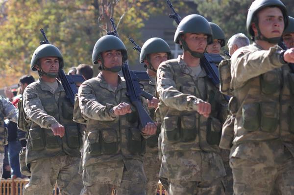 Τουρκικές στρατιωτικές μονάδες παρελαύνουν κατά την παρέλαση της Ημέρας της Δημοκρατίας, στις 29 Οκτωβρίου 2023, στο Ερζερούμ της Τουρκίας. (μέσω Shutterstock)