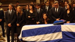 File Photo: O πρόεδρος της ΝΔ Κυριάκος Μητσοτάκης (1-Α) με τη σύζυγό του Μαρέβα (2-Α), και τις αδερφές του Αλεξάνδρα Μητσοτάκη (3-Α) και Ντόρα Μπακογιάννη (4-Α) στη Μητρόπολη Αθηνών όπου έχει τεθεί σε λαίκό προσκύνημα η σορός του πρώην πρωθυπουργού Κωνσταντίνου Μητσοτάκη , Tετάρτη 31 Μαίου 2107. ΑΠΕ-ΜΠΕ, Αλέξανδρος Μπελτές JUNE 5, 2017