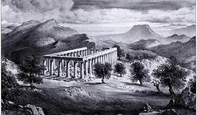 (O ναός του Επικούριου Απόλλωνα. Χαρακτικό σε σχέδιο του Ντόντγουελ την πρώτη δεκεατία του 19ου αιώνα).