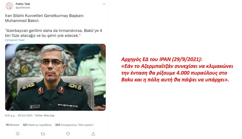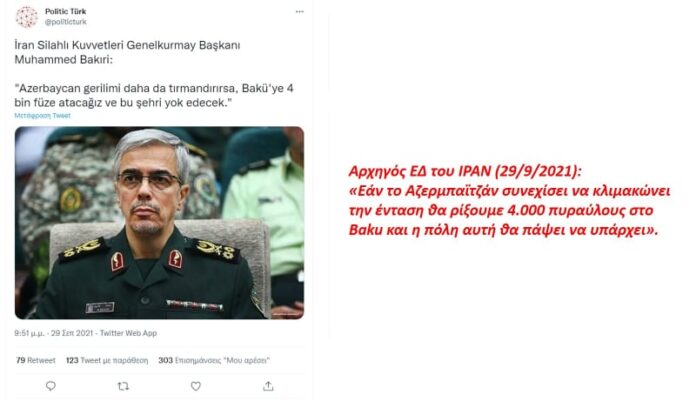 “Το Μπακού θα πάψει να υπάρχει αν το Αζερμπαϊτζάν συνεχίσει να κλιμακώνει τις προκλήσεις του. Θα ρίξουμε 4.000 πυραύλους και θα το εξαφανίσουμε”!