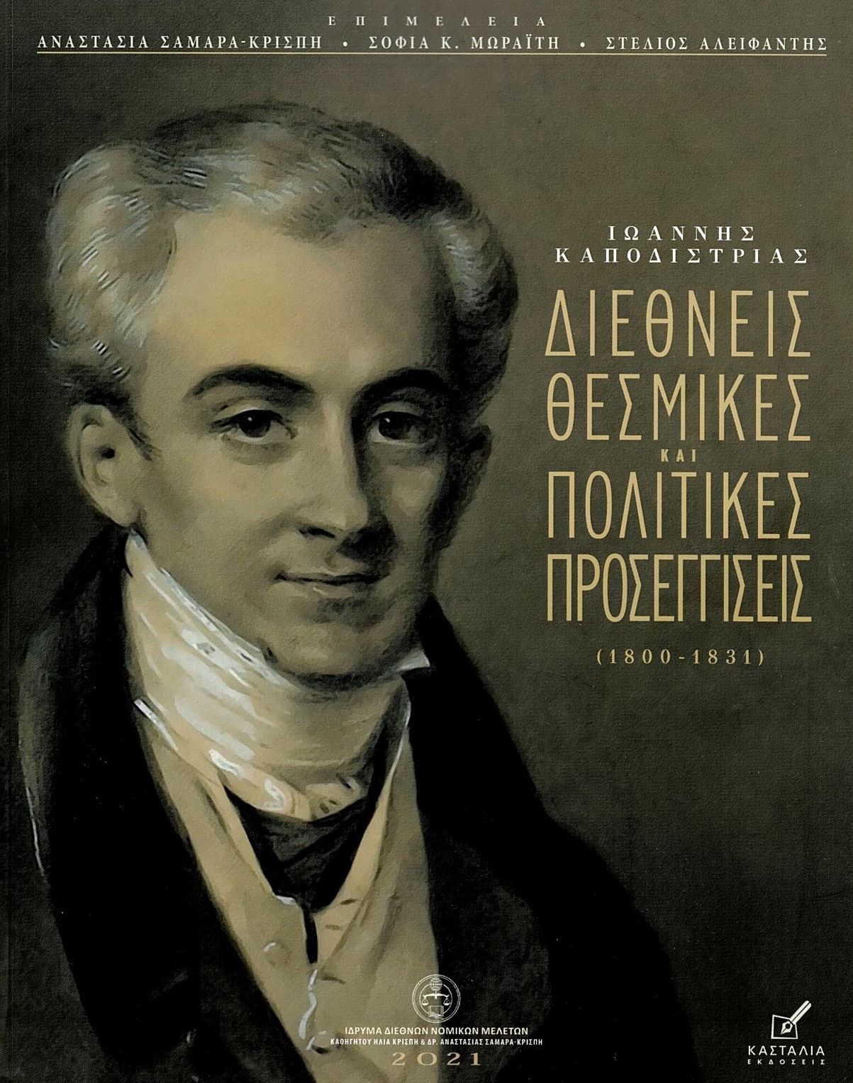 Η παρουσίαση του πολυσχιδούς έργου του και της διεθνούς εμβέλειας, φωτεινής προσωπικότητάς του, αποτελεί ελάχιστο καθήκον και πολύτιμη διδαχή, για τους σύγχρονους Έλληνες και την επίσημη Ελληνική Πολιτεία. Το έργο ανέλαβε το Ίδρυμα Διεθνών Νομικών Μελετών Καθηγητού Ηλία Κρίσπη και Δρ. Αναστασίας Σαμαρά-Κρίσπη, με την στήριξη του Εθνικού και Καποδιστριακού Πανεπιστημίου Αθηνών. Μία πλειάδα 26 συγγραφέων, ανέλαβε να αναλύσει τις ποικίλες δράσεις του Καποδίστρια και την πολύτιμη κληρονομιά που κατέλειπε, στην προσπάθειά του να οικοδομήσει, σε στέρεες βάσεις, το Νέο Ελληνικό Κράτος. Η έκδοση έγινε με την έμπειρη συνεπιμέλεια της Δρ. Αναστασίας Σαμαρά-Κρίσπη, της Δρ. Σοφίας Μωραΐτη και του Συναδέλφου Διεθνολόγου Δρ. Στέλιου Αλειφαντή, από τον εκδοτικό οίκο Κασταλία, του κ. Σεραφείμ Μηχιώτη.