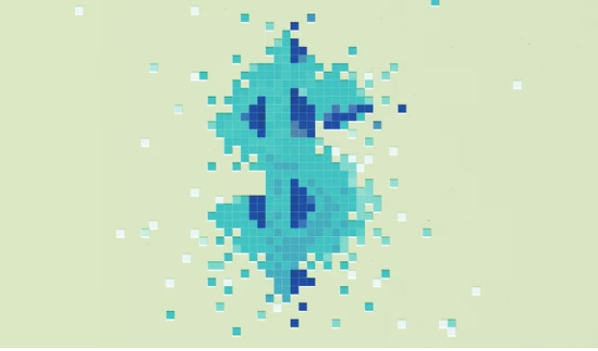 Εικονογράφηση ενός μπλε-πράσινου συμβόλου του δολαρίου φτιαγμένου από pixels