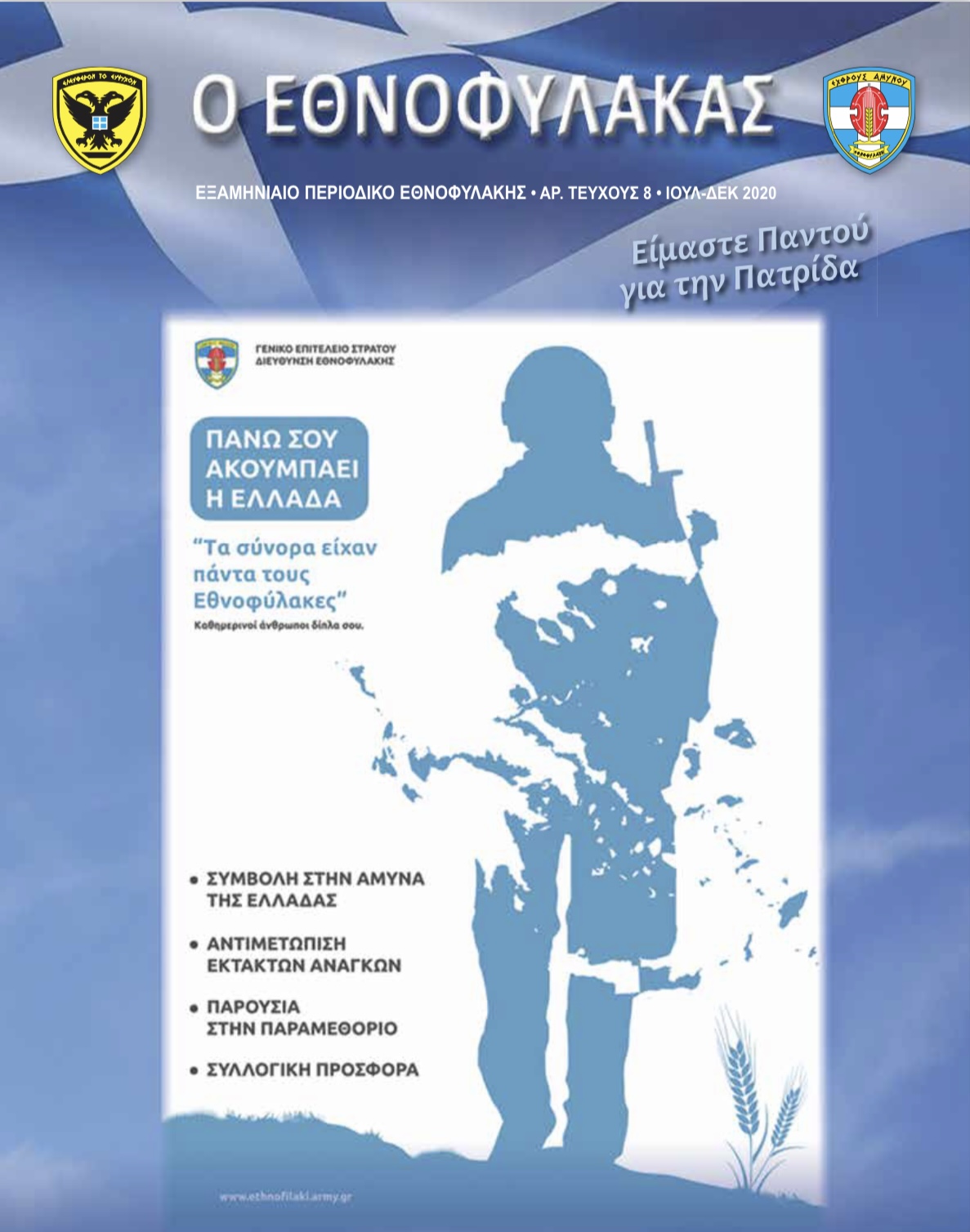 Στις 2 Ιαν 17 κηρύχθηκε από το Υπουργείο Εθνικής Άμυνας (ΥΠΕΘΑ) το 2017 ως «Έτος Εφέδρων και Εθνοφυλάκων» και από τον Μάρτιο του 2017 άρχισε μια τεράστια προσπάθεια για την αναβάθμιση της Εθνοφυλακής με τη συγκρότηση της Διεύθυνσης Εθνοφυλακής (ΓΕΣ/Α5) στο Γενικό Επιτελείο Στρατού (ΓΕΣ), στην οποία τοποθετήθηκα ως Ταξίαρχος Διευθυντής.