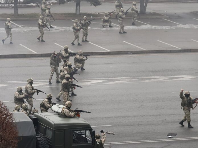 Οι ειρηνικές διαδηλώσεις που εξαπλώθηκαν στην αχανή έκταση του Καζακστάν από την 1η Ιανουαρίου, σύντομα καταλήφθηκαν από εγκληματικές συμμορίες και βίαια άτομα. Ακριβώς για την αντιμετώπιση αυτής της κατάστασης ανομίας που αναπτύχθηκε στις 4-7 Ιανουαρίου, η κυβέρνηση του Καζακστάν ζήτησε τη στήριξη ξένων στρατευμάτων, τα οποία αναπτύχθηκαν γρήγορα από τoν (με ρωσική ομπρέλα) Οργανισμό Συνθήκης Συλλογικής Ασφάλειας (CSTO), του οποίου είναι μέλη η Αρμενία, η Λευκορωσία, το Καζακστάν, το Κιργιστάν και το Τατζικιστάν.