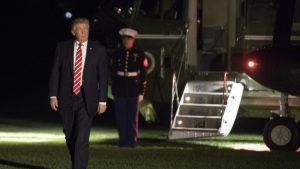 US President Donald J. Trump walks to the residence after stepping off Marine One on the South Lawn of the White House in Washington, DC, USA, 07 October 2017.