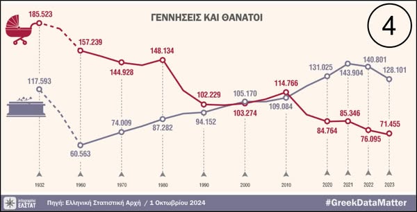 • Το 1989, πριν από 36 χρόνια, ένας σοφός γιατρός και ερευνητής, έγραφε: «Ως Λαός και ως Έθνος έχουμε ολισθήσει απαθείς, αδρανείς και βαθιά ανυποψίαστοι στην πληθυσμιακή παρακμή. Στερεύει η πηγή της ζωής του έθνους μας και είμαστε εμείς οι μόνοι υπαίτιοι, εν γνώσει ή εν αγνοία μας».