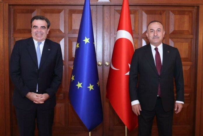 Ο ισλαμιστής υπουργός Εξωτερικών της Τουρκίας, Μεβλούτ Τσαβούσογλου με τον Έλληνα επίτροπο στην Ε.Ε., Μαργαρίτη Σχοινά. Φωτογραφία via Twitter, Mevlüt Çavuşoğlu, @MevlutCavusoglu