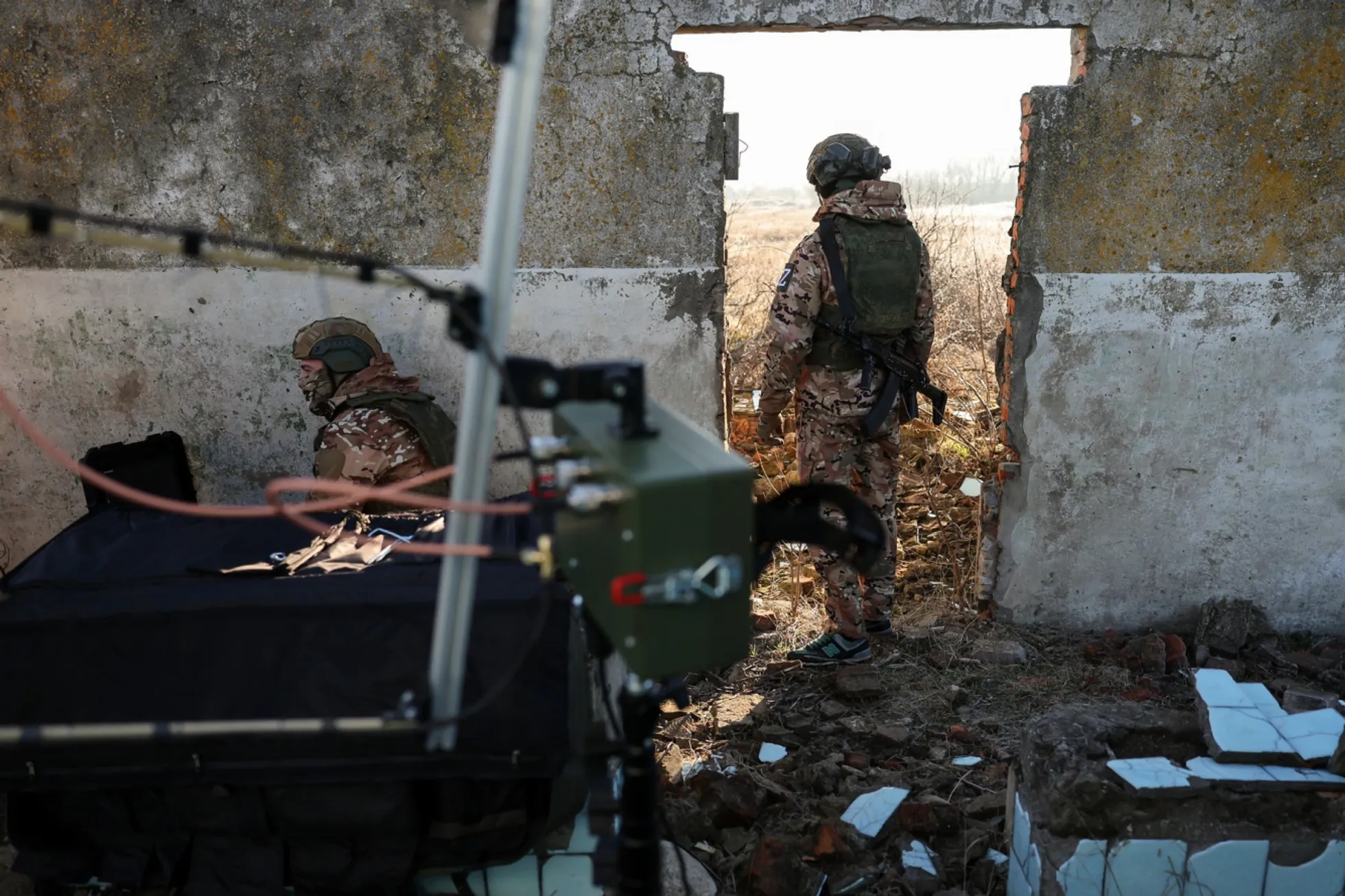 Ρώσοι στρατιώτες από μονάδα μη επανδρωμένων αεροσκαφών της ομάδας δυνάμεων του Ντνιέπερ κατά τη διάρκεια πολεμικής αποστολής στην Ουκρανία. 12 Ιανουαρίου 2025.