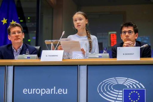Η πρασινοφρουρός Γκρέτα απευθύνεται στους Ευρωβουλευτές. Μιλάει από χειρόγραφο. Συνεντεύξεις δε δίνει γιατί αγνοεί παντελώς το θέμα και μπορεί να βρεθεί κάποιος «αντιδραστικός» δημοσιογράφος…και θα χαλάσει το ίματζ της…