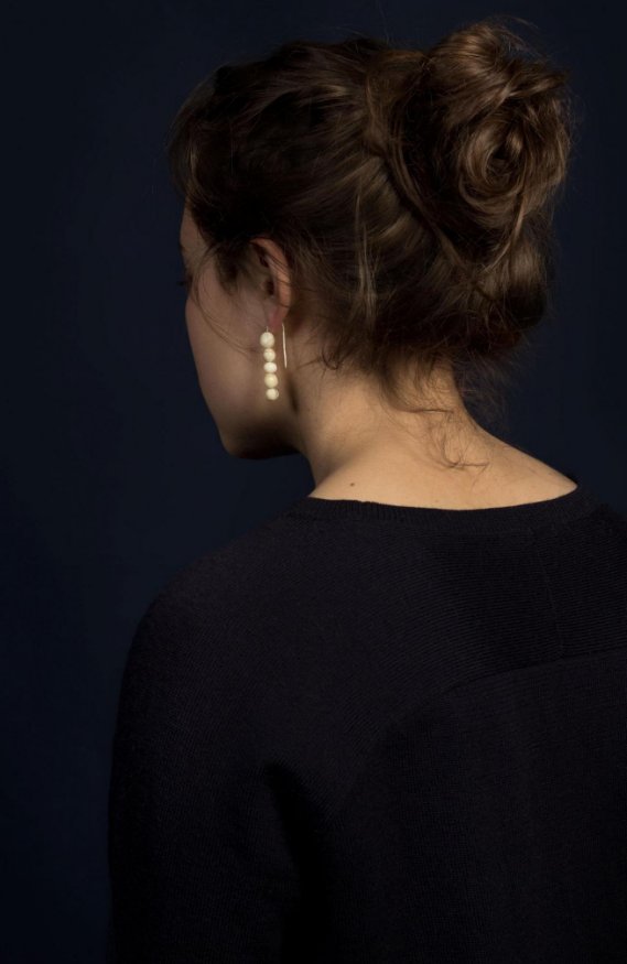 Η συλλογή, που παρουσίασε, περιλαμβάνει σκουλαρίκια, μανικετόκουμπα, καρφίτσες και δαχτυλίδια.