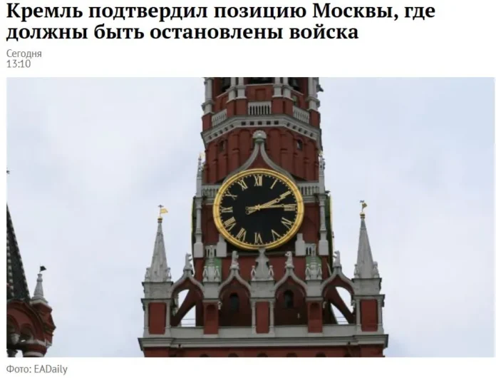 «Το Κρεμλίνο επιβεβαίωσε τη θέση της Μόσχας σχετικά με το πού θα πρέπει να σταματήσει ο Στρατός», γράφει το δημοσίευμα