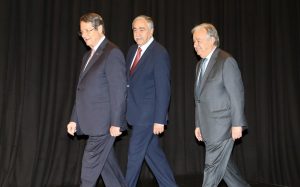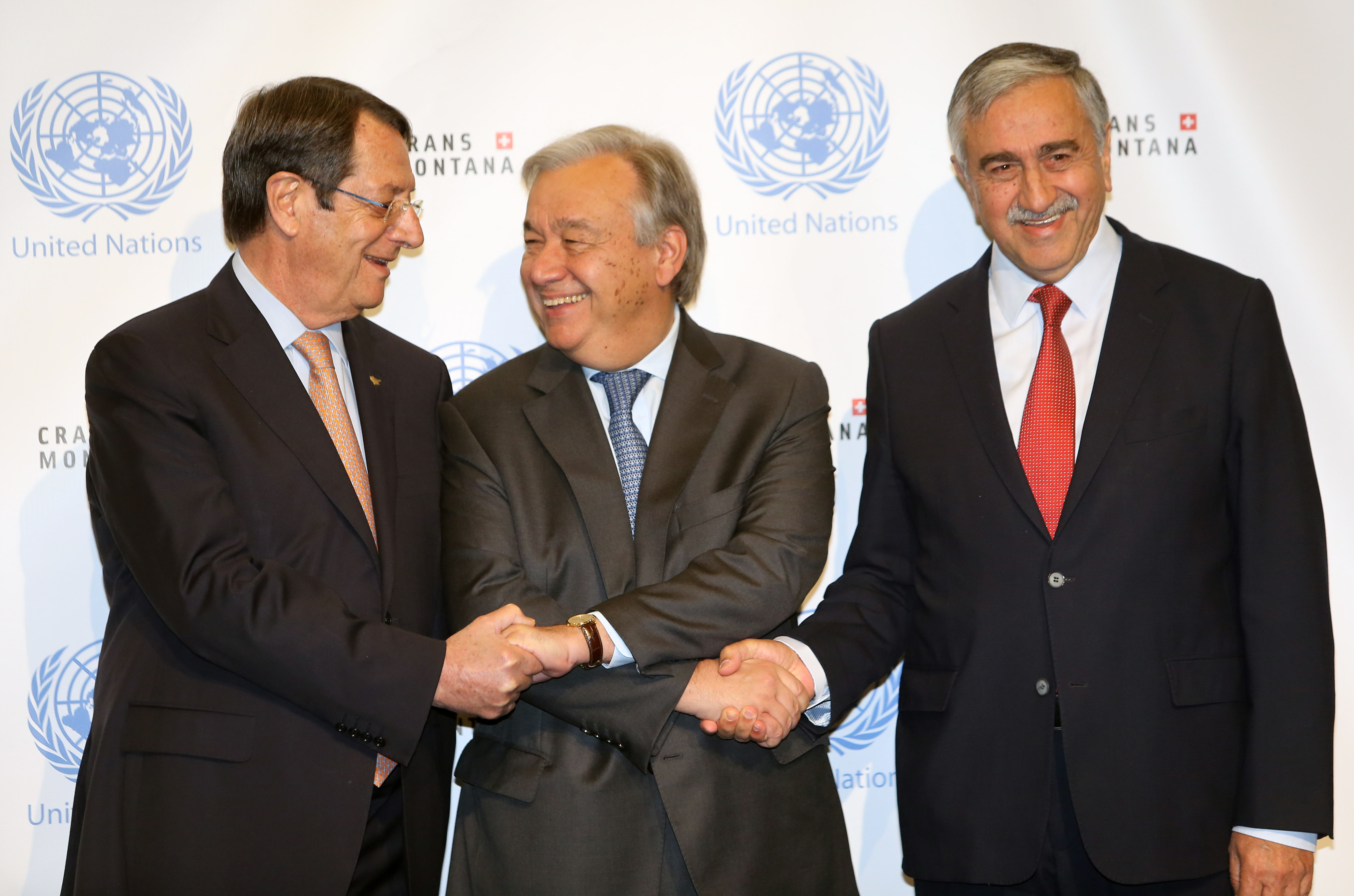 Την επιθυμία της εξεύρεσης λύσης για τους Κύπριους («solution for the Cypriots»), εξέφρασε ο κ. Γκουτιέρες, τονίζοντας ότι πρέπει να βρεθεί τομή για να υπάρξει πρόοδος στην Κύπρο. Επιπλέον ο κ. Γκουτιέρες επισήμανε πως όλοι όσοι συμμετάσχουν στην διάσκεψη, θέλουν να δουν την Κύπρο να μετεξελίσσεται σε πλήρως κανονικό κράτος (normal state) και πρόσθεσε πως «Τα Ηνωμένα Έθνη δεν κουράζονται να στηρίζουν τα μέρη. Θέλουμε τα δύο μέρη να φτάσουν σε αποτέλεσμα», ενώ τόνισε πως έχει γίνει κάποια πρόοδος αλλά υπάρχουν πολλά εκκρεμούντα ζητήματα.