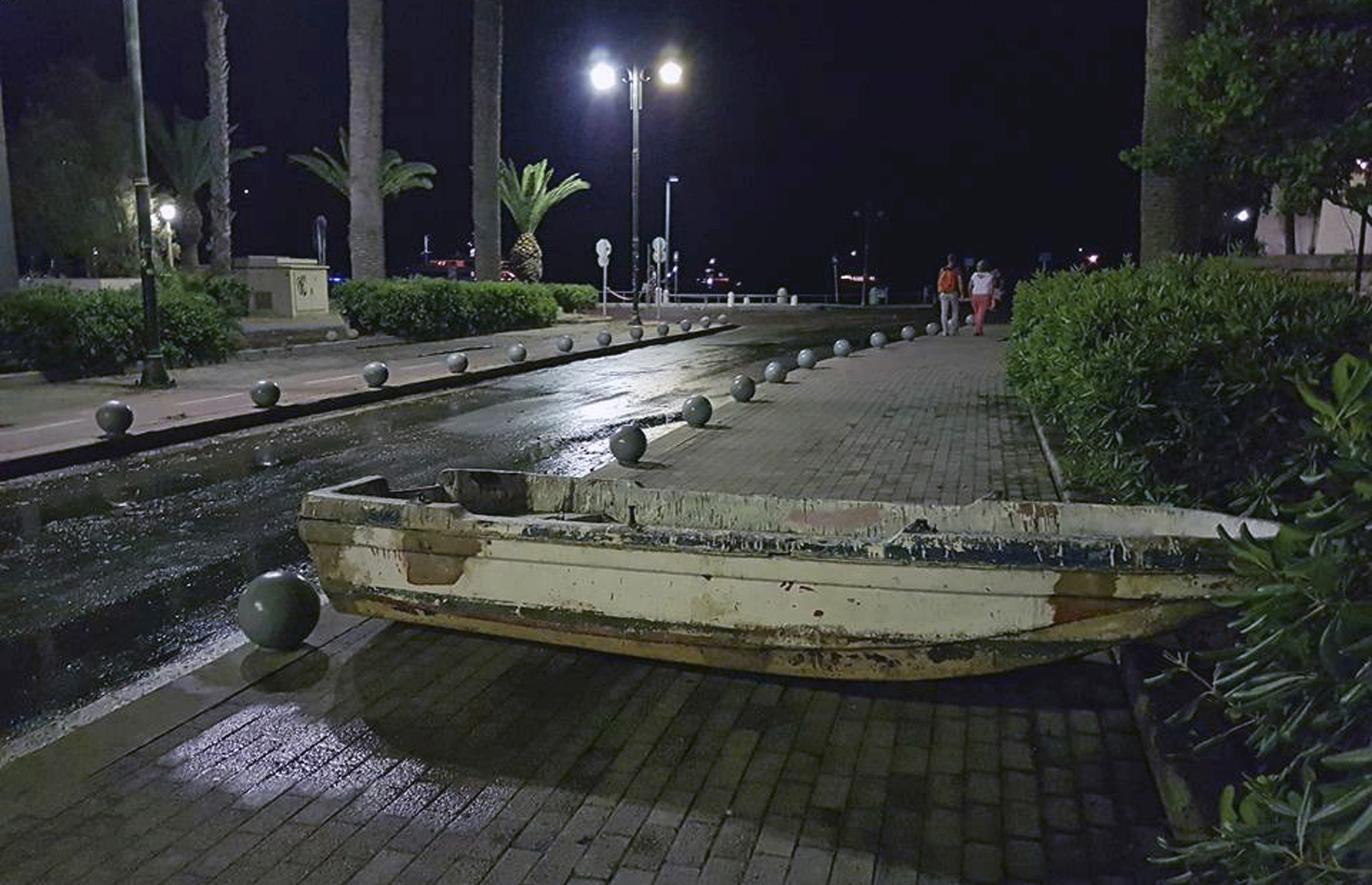 Παράλληλα, σοβαρές είναι οι υλικές ζημιές, με το λιμάνι να αντιμετωπίζει τα μεγαλύτερα προβλήματα. Μεταξύ των κτιρίων που κατέρρευσαν είναι το Ιερό του Μητροπολιτικού Ναού του Αγ. Νικολάου και Τμήμα του Μουσουλμανικού Τεμένους στην πλ. Ελευθερίας.
