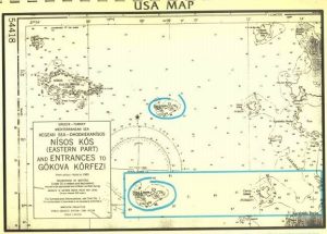 Μάλιστα κάτω από την ονομασία και μέσα σε παρένθεση με κεφαλαία γράμματα αναγράφεται η λέξης “GREECE“ σε αντίθεση με την τουρκική βραχονησίδα CAVUS , που αναφέρει τη λέξη TYRKEY. Ο χάρτης αυτός έχει αρ. 54418 και κλίμακα 1:45.000.
