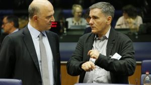FILE PHOTO. Pierre Moscovici, the European Commissioner for Economic and Financial Affairs, Taxation and Custom (L) and Greek Finance Minister Euclid Tsakalotos (R). EPA/JULIEN WARNAND DECEMBER 3, 2017