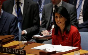 «Μία από τις δυνατότητές μας βρίσκεται στις στρατιωτικές μας δυνάμεις. Θα τις χρησιμοποιήσουμε αν αναγκαστούμε, αλλά προτιμούμε να μην χρειαστεί να κινηθούμε προς αυτή την κατεύθυνση», τόνισε η Χέιλι στο Συμβούλιο Ασφαλείας των Ηνωμένων Εθνών, που συνεκλήθη με θέμα την τελευταία εκτόξευση βαλλιστικού διηπειρωτικού πυραύλου από την Πιονγκγιάνγκ.