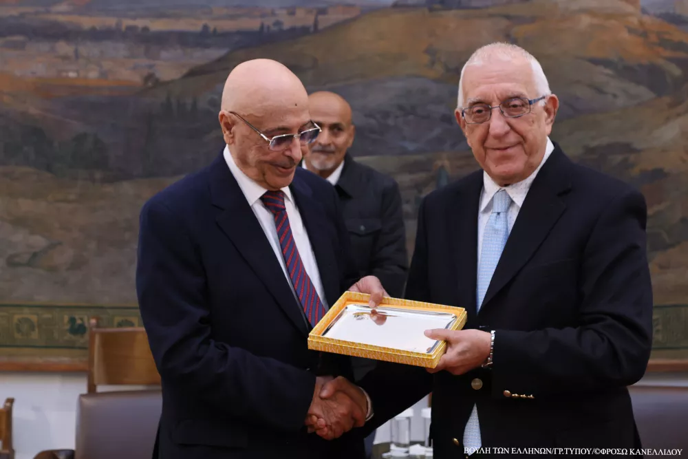 Με τον πρόεδρο της Βουλής των Αντιπροσώπων της Λιβύης, Aguila Saleh Issa, συναντήθηκε σήμερα ο πρόεδρος της Βουλής των Ελλήνων, Νικήτας Κακλαμάνης.