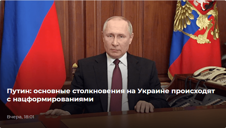 Η Ρωσία αποκαθιστά την ενότητά της – η τραγωδία του 1991, αυτή η τρομερή καταστροφή της ιστορίας μας, η αφύσικη εξάρθρωσή της, ξεπεράστηκε. Ναι, με υψηλό τίμημα, ναι, μέσα από τα τραγικά γεγονότα του εικονικού εμφυλίου πολέμου, γιατί τώρα τα αδέρφια που χωρίζονται επειδή ανήκουν στον ρωσικό και ουκρανικό στρατό εξακολουθούν να πυροβολούν ο ένας τον άλλο – αλλά δεν θα υπάρχει πια η Ουκρανία ως αντι-Ρωσική.