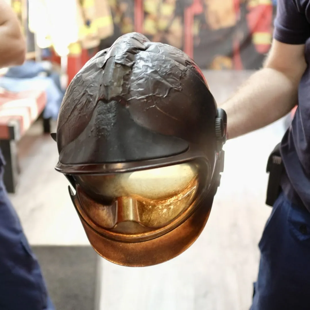 Ένα καμένο κράνος. Φωτογραφία από την Jessica McKenzie