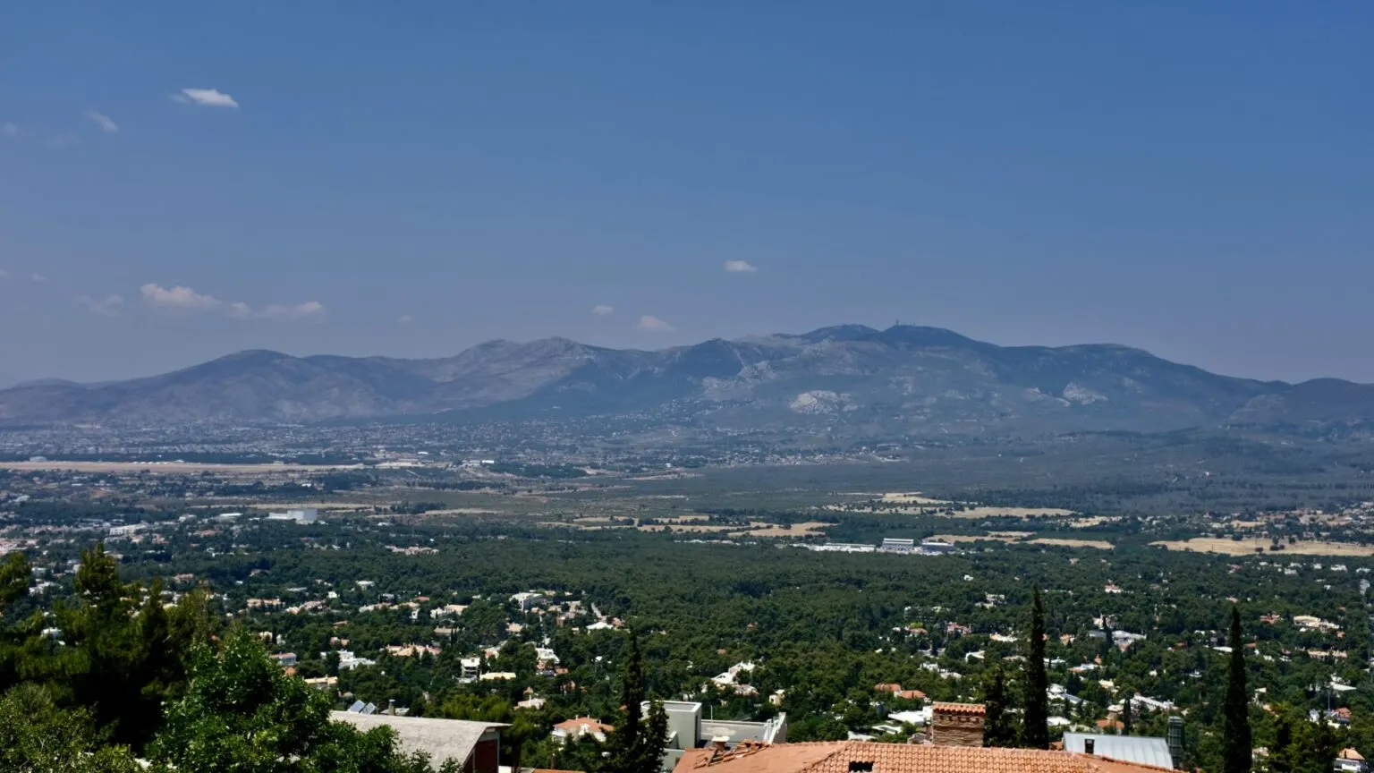 Η Πάρνηθα, όπως φαίνεται από τα βόρεια προάστια της Αθήνας το 2025. Φωτογραφία: Jessica McKenzie