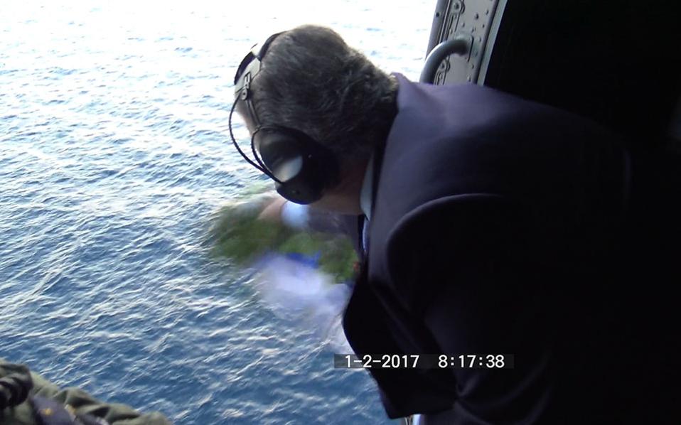 Ο υπουργός Εθνικής Άμυνας πέταξε πάνω από τη βραχονησίδα στις 08:15 με στρατιωτικό ελικόπτερο, συνοδεία του αρχηγού του Γενικού Επιτελείου Αεροπορίας αντιπτέραρχου Χριστοδούλου.
