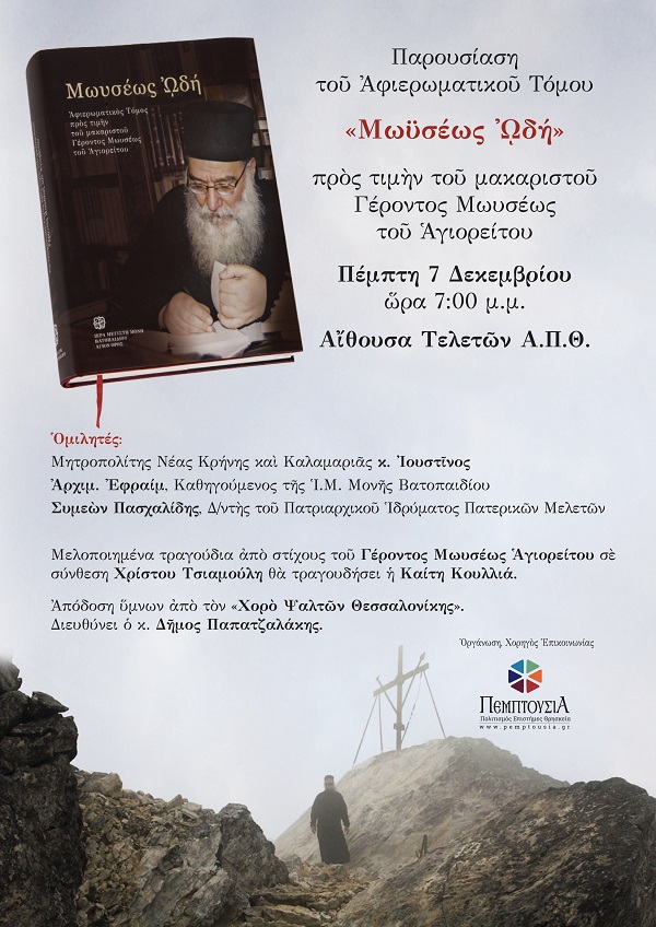 Μωυσέως Ωδή: παρουσίαση Αφιερωματικού Τόμου για τον Γέροντα Μωυσή Αγιορείτη στην Θεσσαλονίκη