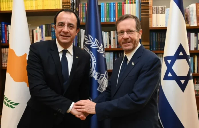 (φωτογραφία: Ιερουσαλήμ, 11 Μαΐου 2023 – Ο Ισραηλινός Πρόεδρος Ισαάκ Χέρτζογκ κατά τη διάρκεια συνάντησης με τον Κύπριο Πρόεδρο Νίκο Χριστοδουλίδη, ο οποίος επισκέπτεται το Ισραήλ)