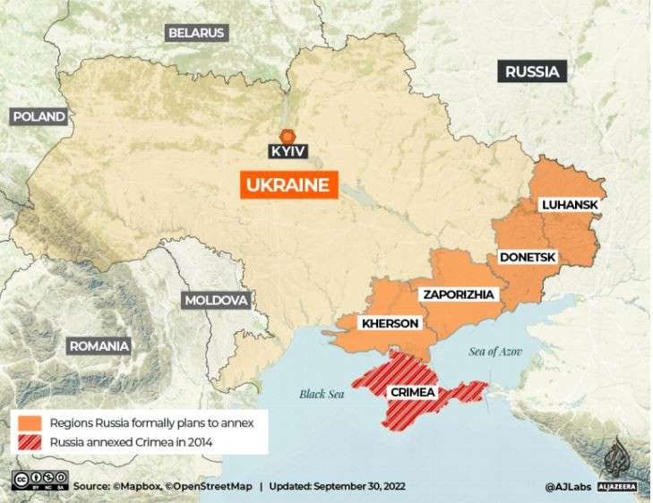 Βέβαια ο πόλεμος συνεχίζεται και δε γνωρίζουμε την τροπή και την έκταση που μπορεί να λάβει, αλλά, φαίνεται ότι η Ρωσία, τη στιγμή που δέχεται ισχυρή ουκρανική αντεπίθεση, περιορίζεται στο Ντομπάς και στη στρατηγική προάσπιση της Κριμαίας, με την εξασφάλιση της ενδοχώρας της (Χερσώνα). Ο στόχος της προστασίας του ρωσικού πληθυσμού της Ουκρανίας έχει επιτευχθεί, αλλά, μόνο εν μέρει.