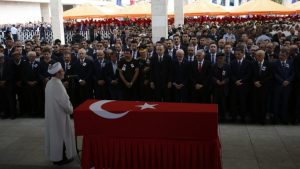 Turkish President Recep Tayyip Erdogan (C) and Chief of Staff General Hulusi Akar (10-L) pray during the funeral ceremony of Turkish Major General Aydogan Aydin who was killed in a helicopter crash in Sirnak, on 31 May 2017, in Ankara, Turkey, 01 June 2017. At least 13 soldiers were reported killed in the helicopter crash in Sirnak city. EPA, TUMAY BERKIN JUNE 2, 2017