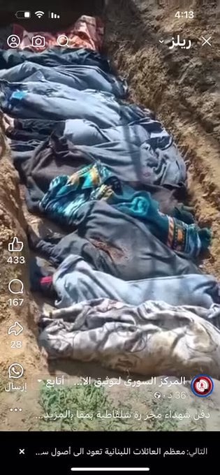-Syria-AANES-Alawites:Η ταφή σημερα των άοπλων αλαουιτών μαρτύρων στο χωριό Shalfatiyah σε ομαδικούς τάφους αφού σκοτώθηκαν από τις τρομοκρατικές συμμορίες HTS.(H ανακοινωση Γεραπετριτη ηταν επιεικως απαραδεκτη..) .1777 Oικογενιες Αλαουιτων κατεφυγαν στον Λιβανο.