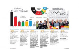 Σε γενικές γραμμές, αρκετοί έμπειροι αναλυτές συμμερίζονται την κοινή ανησυχία ότι το εκλογικό αποτέλεσμα στη Γερμανία θα ερεθίσει εντός του CDU, αλλά και του βαρύτατα πληγωμένου CSU της Βαυαρίας, τα πλέον συντηρητικά ένστικτα, κάτι που, λόγω της τρέχουσας συγκυρίας, θα επηρεάσει ως ντόμινο και την Ελλάδα.